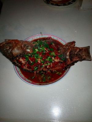 锅里留油把姜蒜剁椒放进去炒,炒出红油就加一碗水,把鱼也放进去盖好锅盖煮,记得多煮一会更好吃