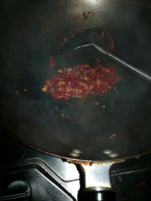 加葱、姜、干辣椒。爆香。