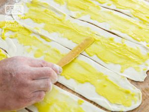 表面轻轻涂上水油酥,下面空出1cm。