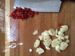 蒜头拍碎辣椒切小段