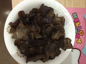 把泡好的木耳去根,剪小一点。