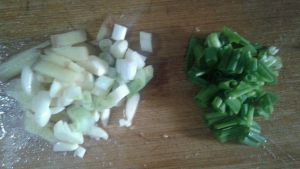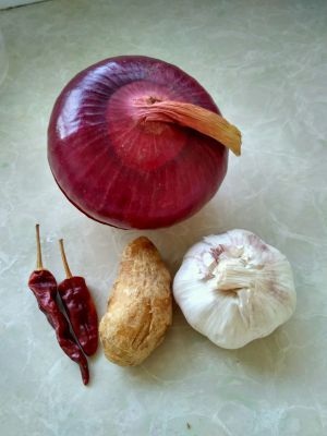 锅内放油,下葱姜蒜粒。小火煸炒出香味。