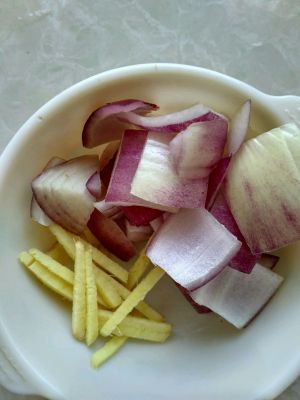 五花肉切薄片,加盐 酱油 料酒 码味,放置片刻
