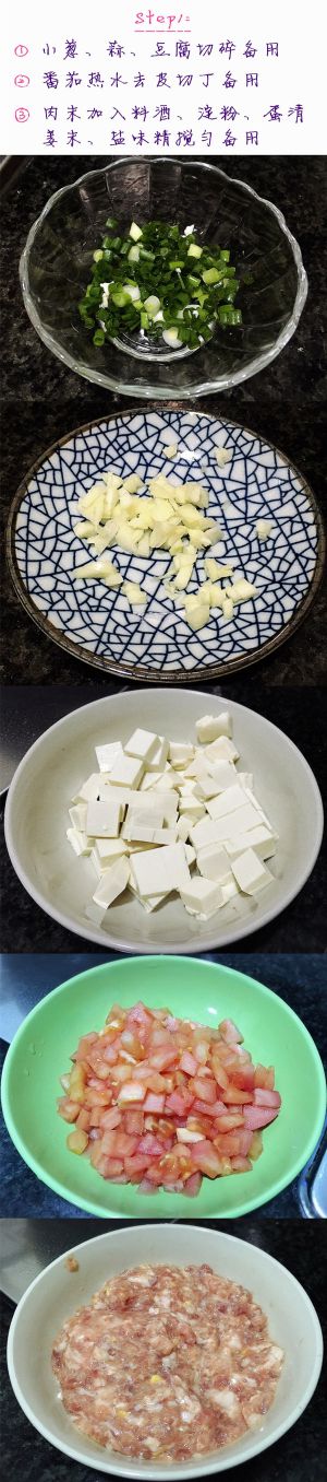 番茄去皮切丁,豆腐切丁