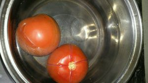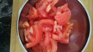 西红柿去蒂切小块,鸡蛋打散,葱姜切碎放一旁备用