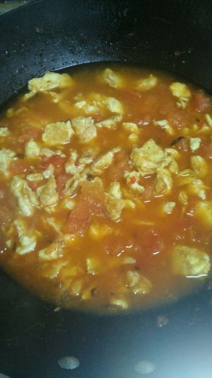 加鸡蛋,盐,一勺番茄酱,适量蚝油煮开