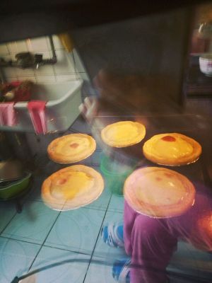 倒上挞水,七分满即可,忠臣烤箱中层上下火190度.25分钟.