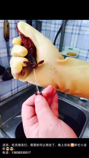 (这是我倒别人去虾线的图,自己弄得是在太丑)捏着两个爪子去,别夹着手了啊,也可以买别人去好的虾线