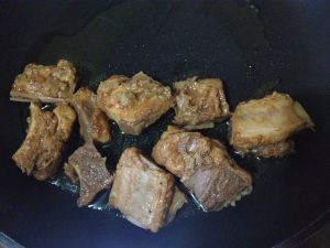 倒入排骨,翻炒均匀。 葱姜我也没扔掉,可以继续用,吃的时候可以直接挑出来扔掉哦!