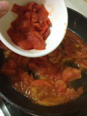 倒入调味的番茄酱和酱油,宝宝比较大了,可以再来点盐就足够了。 tips:小宝宝吃的话,酱油和番茄的量要减少哦!