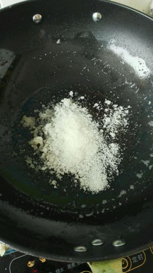 在锅中留点少数的油,再把细沙糖放在入锅中。