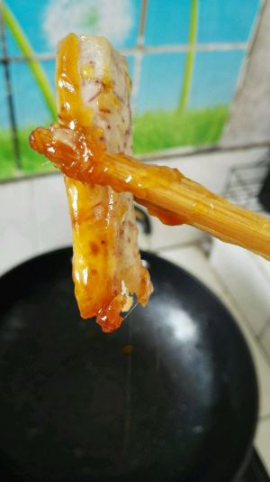 ▲ 芋头放进去后,快速翻炒几下,让芋头均匀的裹上糖浆,就可以出锅了。稍微晾一晾就可以轻松拉出很长的丝呢。