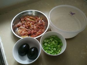 里脊肉松花蛋加料酒,胡椒粉,生抽,少许盐,姜丝,腌制半小时以上