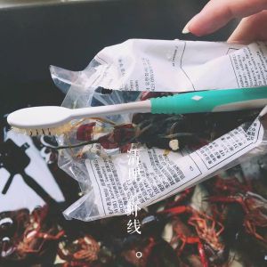 用刷子使劲的刷洗龙虾的头部,跟腹部,挨个刷,注意别被夹到手哦