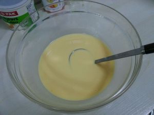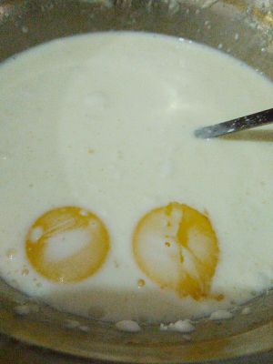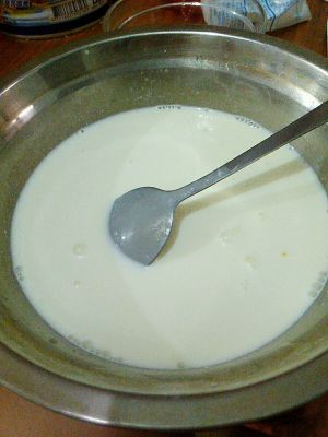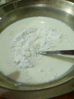 淡奶油,牛奶,低筋面粉,糖混合均匀,可用刮刀压的没有颗粒