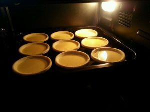 把过筛后的蛋液倒入塔皮,七分饱就够了。(这一步忘记拍照了不要介意哈)最后就可以进烤箱了:上下火210度20分钟。接下来就慢慢等待吧