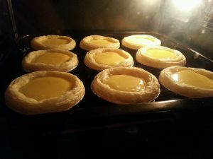 烤制完成的成品蛋挞状态。