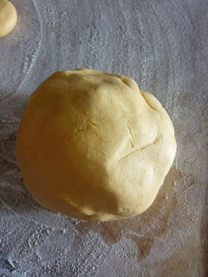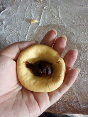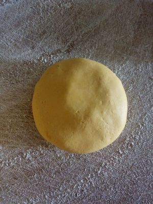 将做好的南瓜泥和糯米,澄面粉,粘米粉溶在一起,做成面团,(最好在南瓜热时和面溶在一起做成面团)上面用牙签雕上花,就可以上蒸笼蒸。