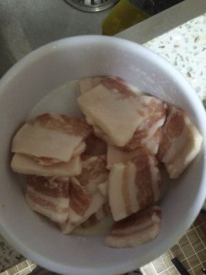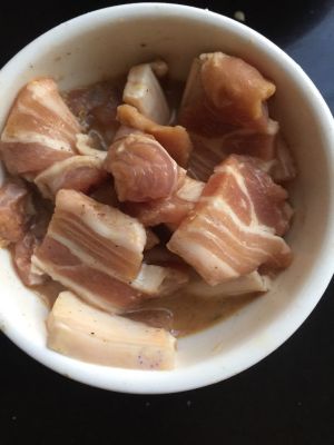 猪肉切片加入淀粉拌匀备用(本人喜欢五花肉)