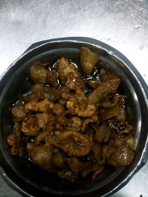 最后把炒好的肉加入,加入味精。少许东谷。香喷喷的小炒肉出锅了。