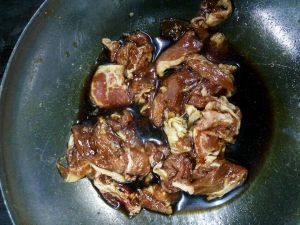 然后,热锅下油,下肥肉大火煸油,肉煸成焦黄色后捞出,锅里的油留着炒肉。