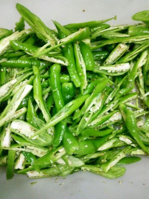 再放入烘好的青辣椒一同炒