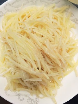 土豆洗净,去皮切丝,放入水中泡一会