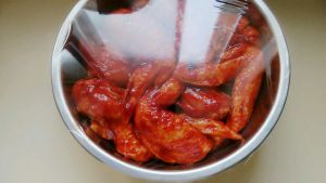 将鸡翅与料汁抓匀,盖上保鲜膜放入冰箱冷藏1-2小时