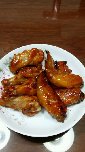烤箱预热,上下火中层210度,先烤10分钟,反面,涂盆里剩下的没有浸透的腌料烤10分钟,反面再烤5分钟,再次反面烤5分钟,如果腌料还多就没次反面的时候涂一下。要耐心一点,翅根的肉比较厚。