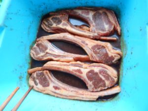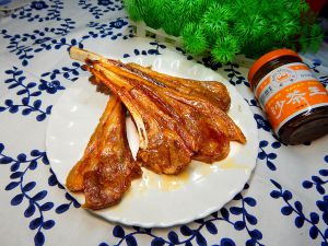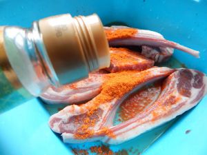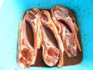 加入适量盐,生抽及切成丝的洋葱,充分按摩羊排,两小时后加入烤肉酱,按摩羊排,再腌制30分钟。
