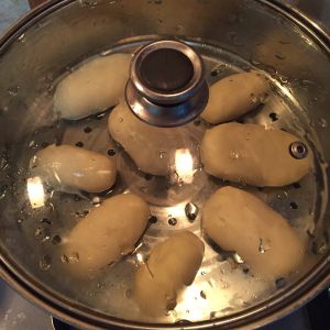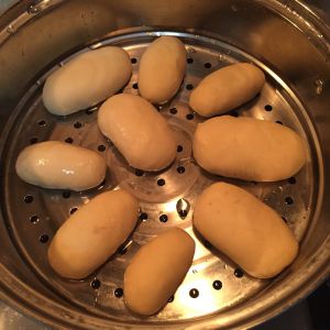 下锅中火蒸熟。不要用大火,不易蒸透。