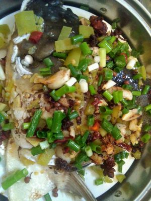 看吧,辣椒是不是太少了。宝宝们动手制作的时候一定要多放些辣椒和辣椒酱,炒出辣椒香在添些水做汤汁浇在鱼头上。