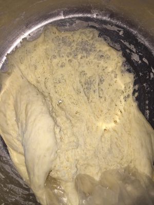 面粉、牛奶、白糖、盐、酵母和在一起,我带的手套比较好洗手。