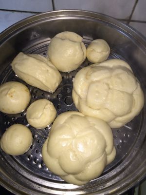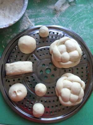 然后整形,上锅蒸。水没开就可以放进去了,水开之后五到十分钟就可以了
