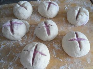 依次包完以后,在每个生坯上划十字刀口。 覆盖湿屉布,二次饧发20分钟。