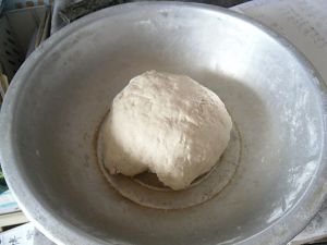 再用擀面杖轻轻擀平,整圆,注意不要太用劲。