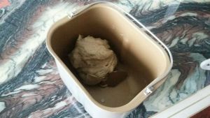 晚上下班后,取出面团,放入面包机,启动一个搅拌程序。