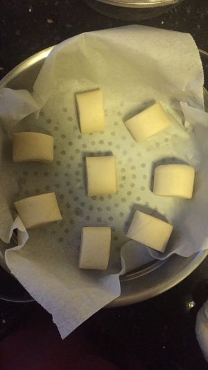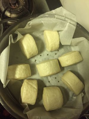 放进蒸笼,发酵二十分钟,冷水开蒸,水开后改小火,等十五分后,关火,五分钟后再开盖