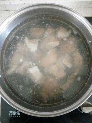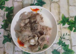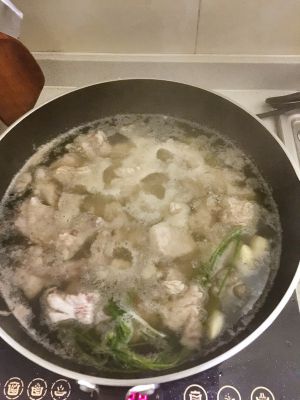 放排骨,水煮开,大火煮十分钟左右。放盐。然后撇掉浮沫。转小火煮四十分钟。