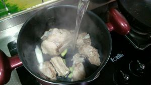 接着将排骨洗净,烧水将洗净的排骨焯一下去血水