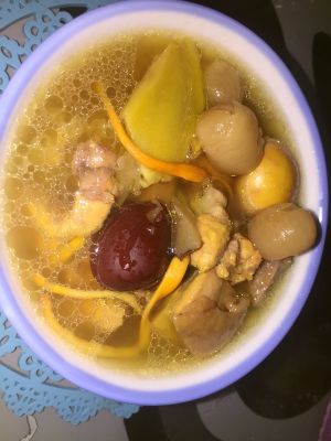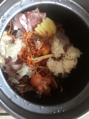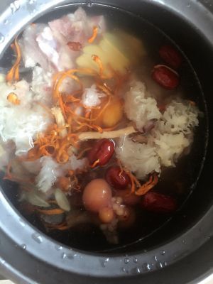沸水,将排骨、鳘鱼胶、淮山一同放入养生壶,煮2-3hours