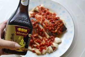 将多余汁倒掉,然后淋上蒸鱼豉油