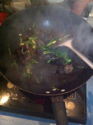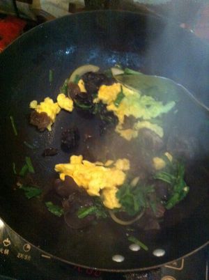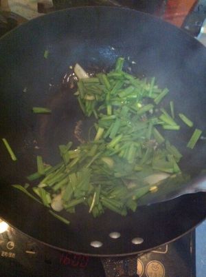 待油热后,讲鸡蛋韭菜下锅翻炒。感觉淡了可少放些盐,酱油。韭菜不要炒的时间太长,容易炒老影响口感。