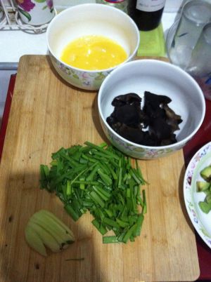 食材准备好,韭菜看喜欢可以切碎点儿,我切的段儿。