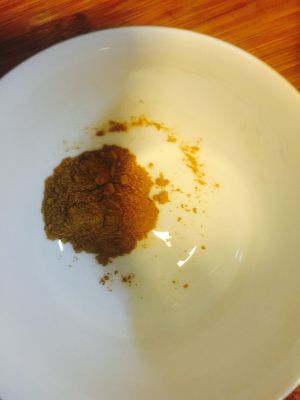 准备好咖喱粉,把泡过盐水的菠萝切成小丁