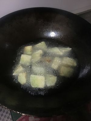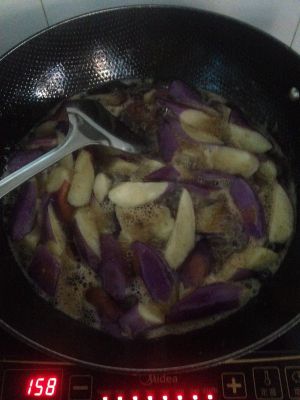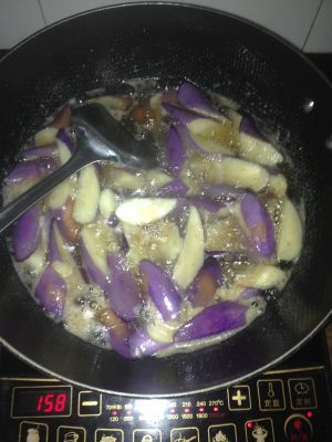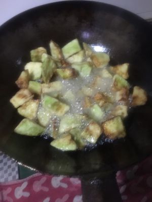 加入茄子,烧到两面金黄