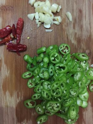 起锅倒油,油热加蒜末