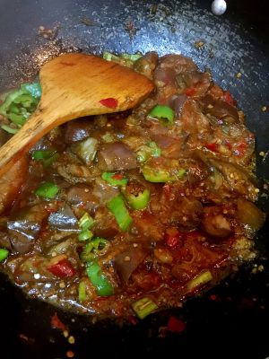 成品图:我不喜欢吃大块茄子,所以快好的时候让我故意把茄子块压散了! 我做的份量够三个人吃的