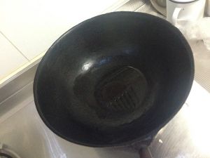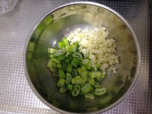 换了一个平底锅因为小锅里炸茄子油省很多,避免油腻,放一点点油,用葱花炝个锅