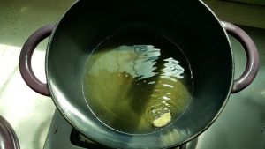 然后在锅中放入葱姜蒜;